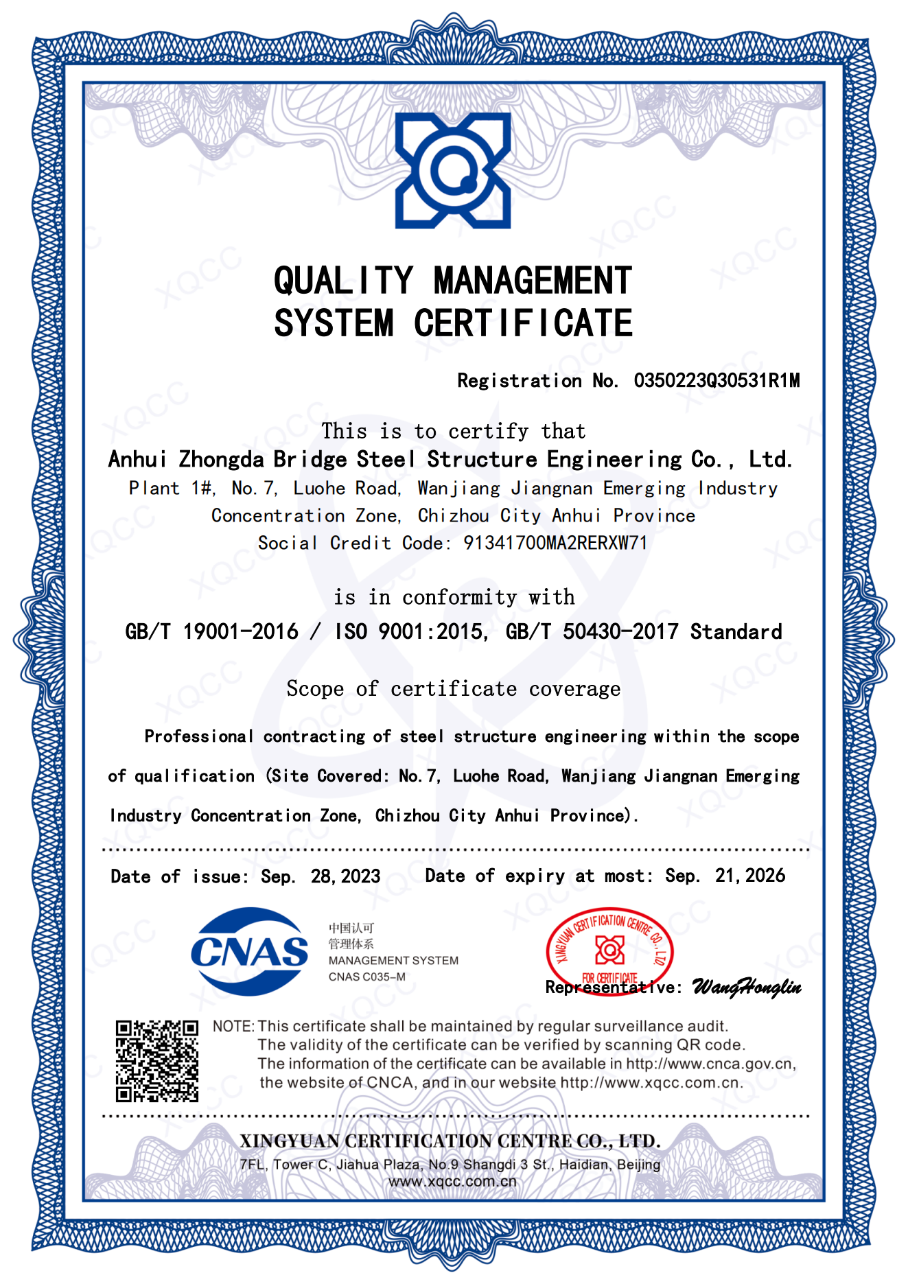 质量管理体系认证证书